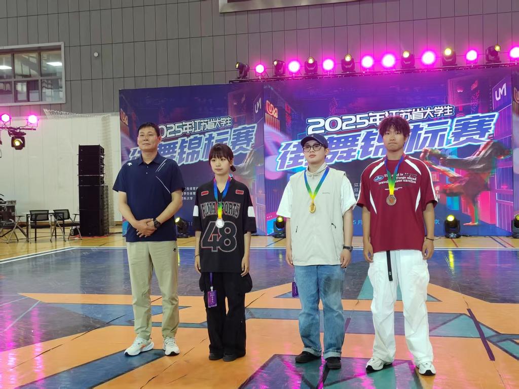 赛场上我校选手精神饱满、激情四射,不畏强手,勇于拼搏。经过两天的激烈角逐,我校选手顺利完成了比赛。来自儿童教育与人文学院的吉星辰同学荣获高职高专组街舞locking组冠军。
